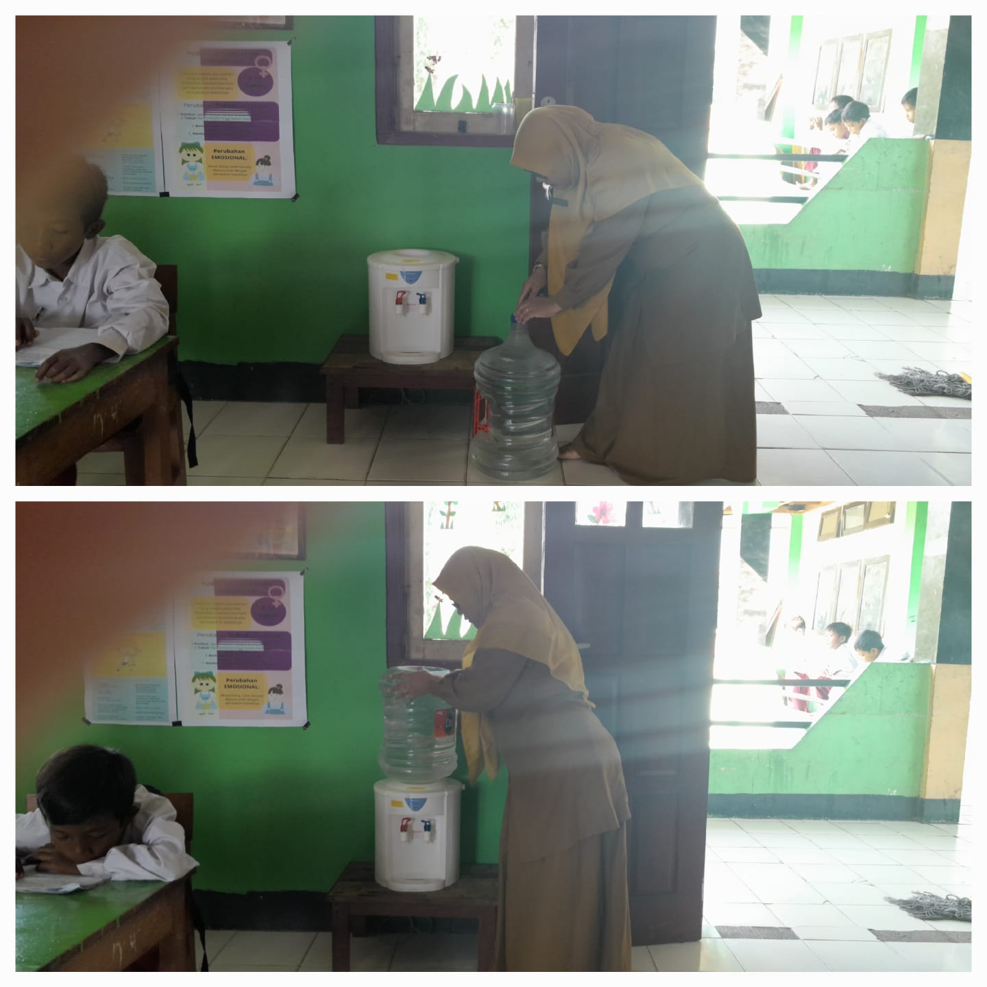 Bu Eka Setiawati Bimantari, S.Pd Tanamkan Kebiasaan Minum Air Putih di Kelas 4A