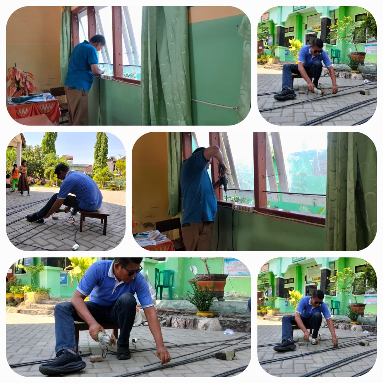 Senin, 27 Oktober 2025, suasana kebersamaan terlihat jelas di lingkungan SDN 12 Sarae Kota Bima. Para bapak-bapak guru bekerja sama memasang terali besi pada jendela ruang guru, yang rencananya akan dimanfaatkan sebagai ruang pembelajaran digitalisasi dengan memanfaatkan perangkat IFP (Interactive Flat Panel) bantuan dari pemerintah.