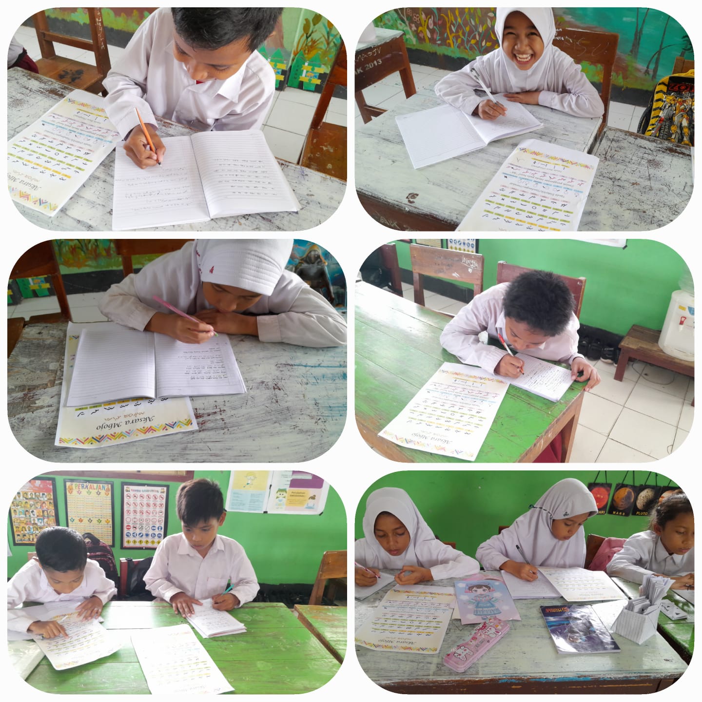 Cinta Budaya Lokal, Siswa Kelas 4A Antusias Menulis Aksara Bima”