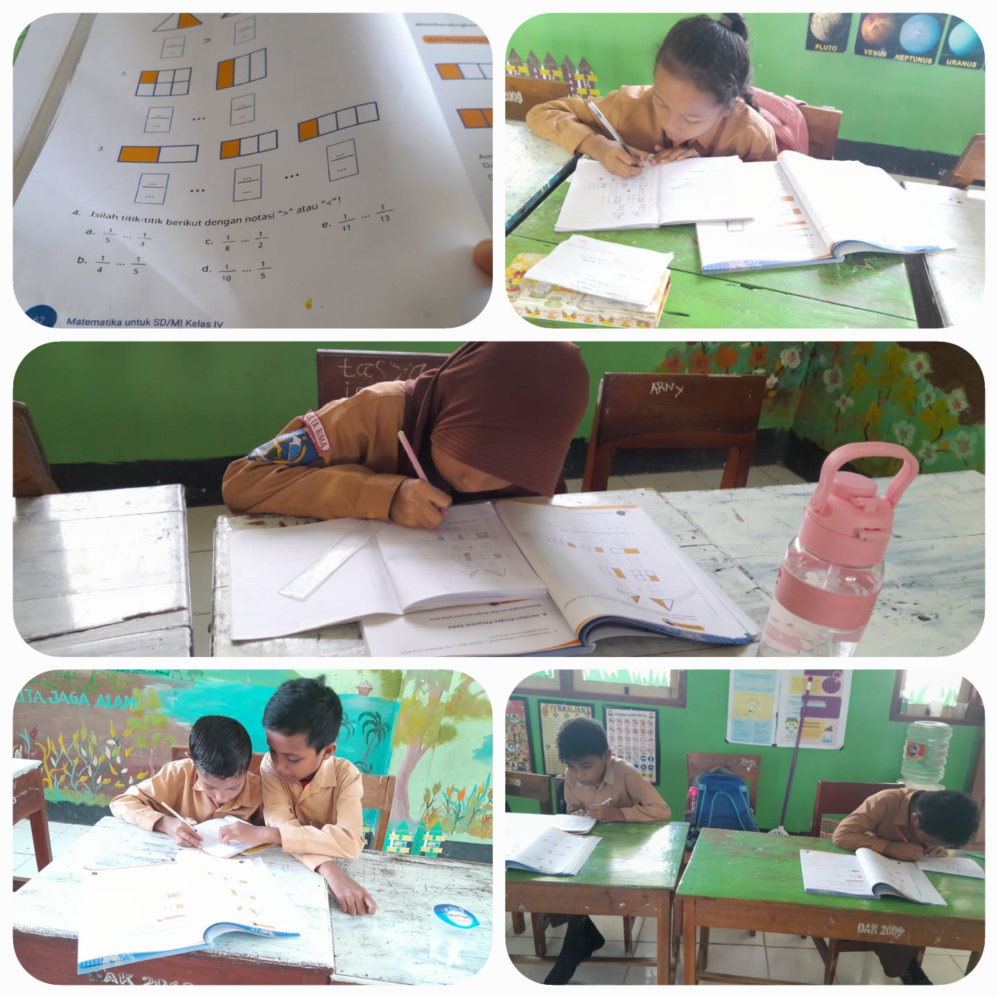 Pembelajaran berlangsung dengan penuh keceriaan. Siswa tampak bersemangat dalam mengerjakan soal dan berdiskusi bersama teman maupun guru. Melalui kegiatan ini, diharapkan siswa semakin terampil dalam memahami konsep pecahan serta mampu menerapkannya dalam kehidupan sehari-hari.
