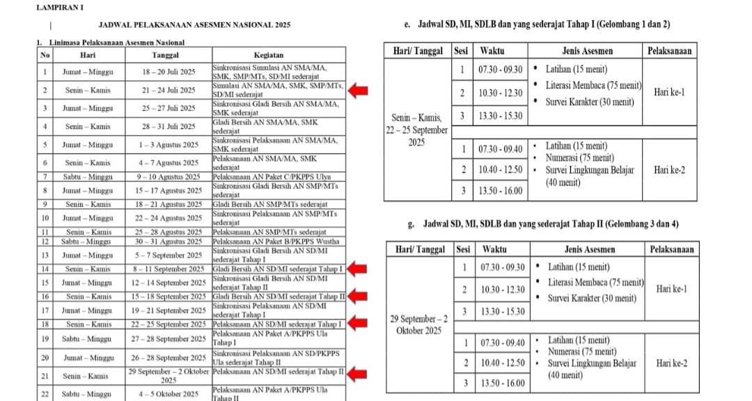 Selain itu, kami sampaikan pula beberapa informasi terkait pelaksanaan Asesmen Nasional Tahun 2025 sebagai berikut: