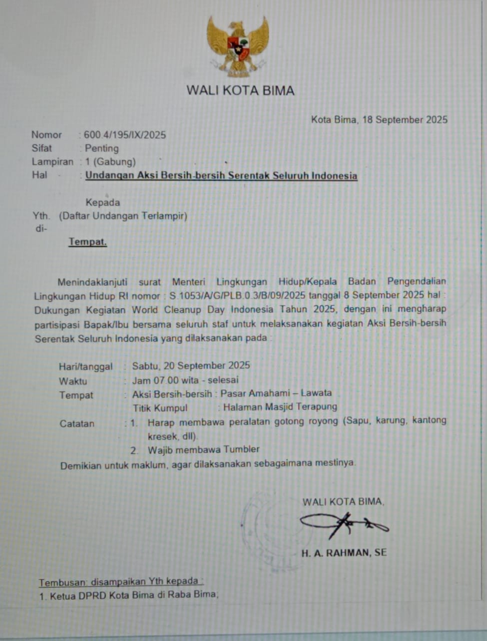 Seluruh Guru-Guru Dan Tendik SDN 12 Sarae Kota Bima Siap Mengahdiri Undangan Aksi Bersih-bersih Serentak Seluruh Indonesia