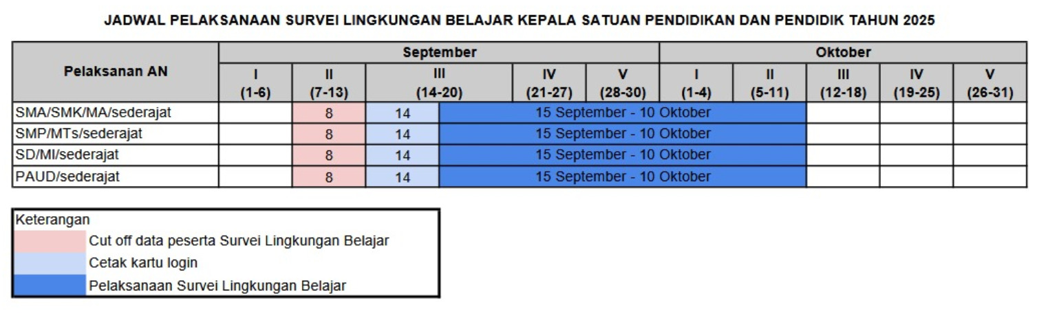 Jadwal Survei Lingkungan Belajar 2025